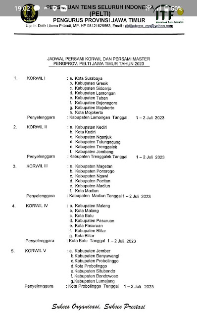 Jadwal Persami Korwil Pengprov PELTI Jatim Tahun 2023 |